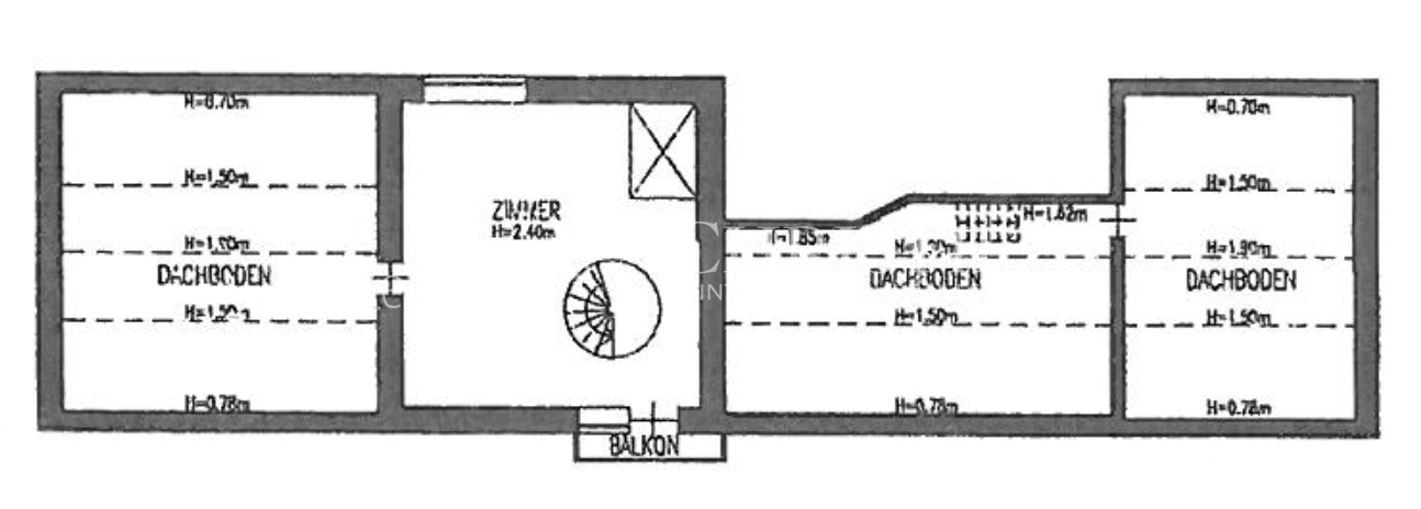 Über eine Wendeltreppe gelangen Sie in das Dachgeschoss, wo sich ein weiteres, helles Zimmer mit kleinem Balkon befindet – ideal als Atelier, Bibliothek oder Yoga-Raum mit Aussicht auf die Natur.