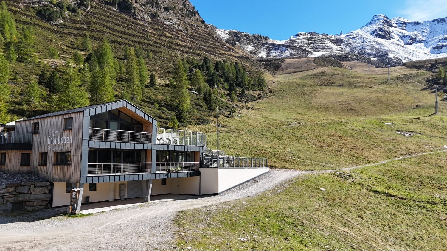 Die Grünbodenhütte ist direkt mit der Grünbodenbahn erreichbar und befindet sich mitten im Ski- und Wandergebiet – komfortabel, sonnig und mit atemberaubendem Blick auf die Gipfel der Ötztaler Alpen.