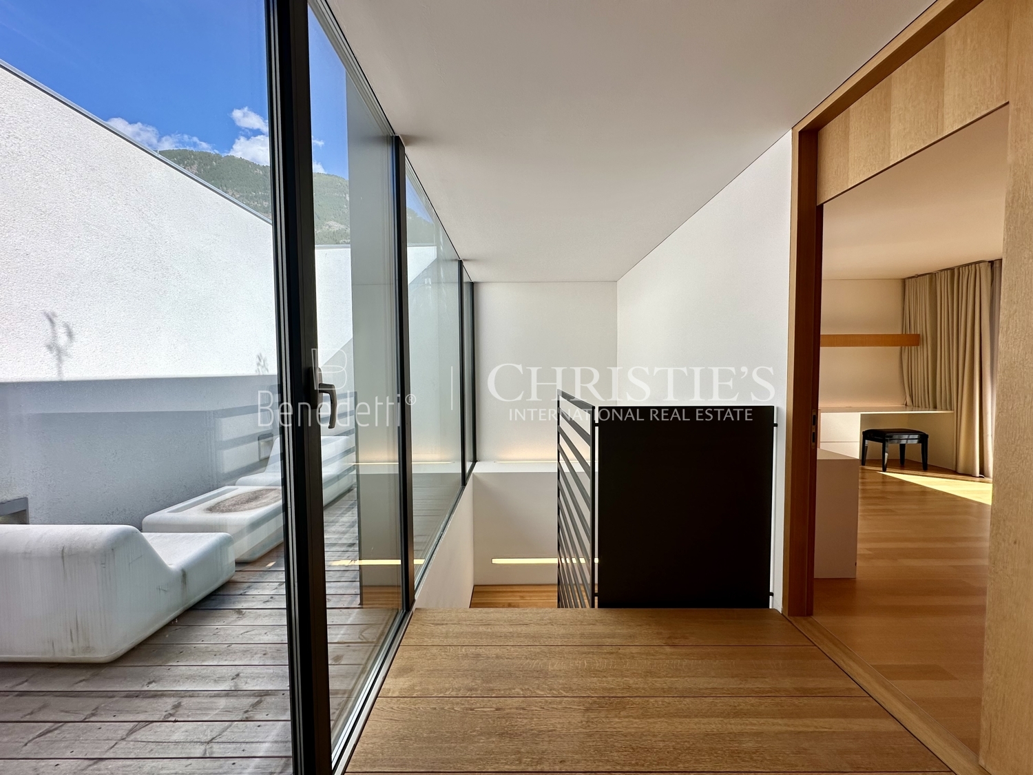 Obergeschoss: Master-Bedroom mit begehbarem Schrank und en suite Badezimmer, offene Bibliothek/Galerie mit Atrium