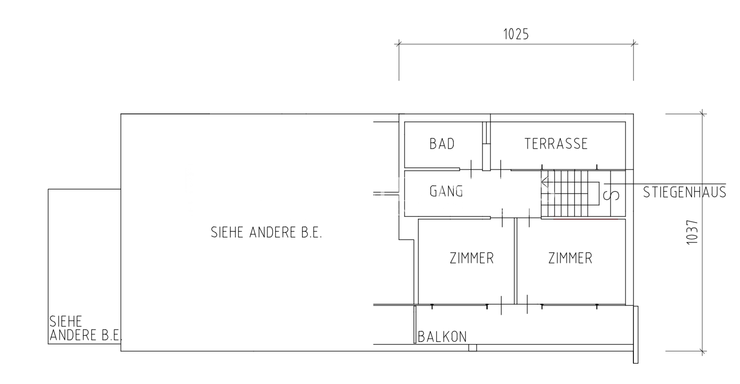 Dachgeschoss: zwei Schlafzimmer mit Balkon, Badezimmer, Gang sowie eine private Dachterrasse