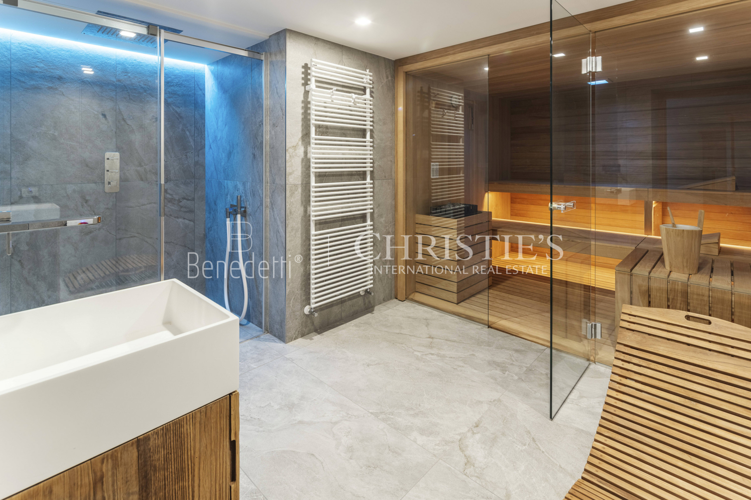 Die Unteretage ist dem Wohlbefinden gewidmet und bietet einen exklusiven Wellnessbereich mit Sauna und Ruheraum, dazu Waschküche und Keller. Ein Garagenplatz, weitere Außenstellplätze sowie ein modernes Hausautomationssystem mit individuell regelbarer Methanheizung vervollständigen das Angebot.