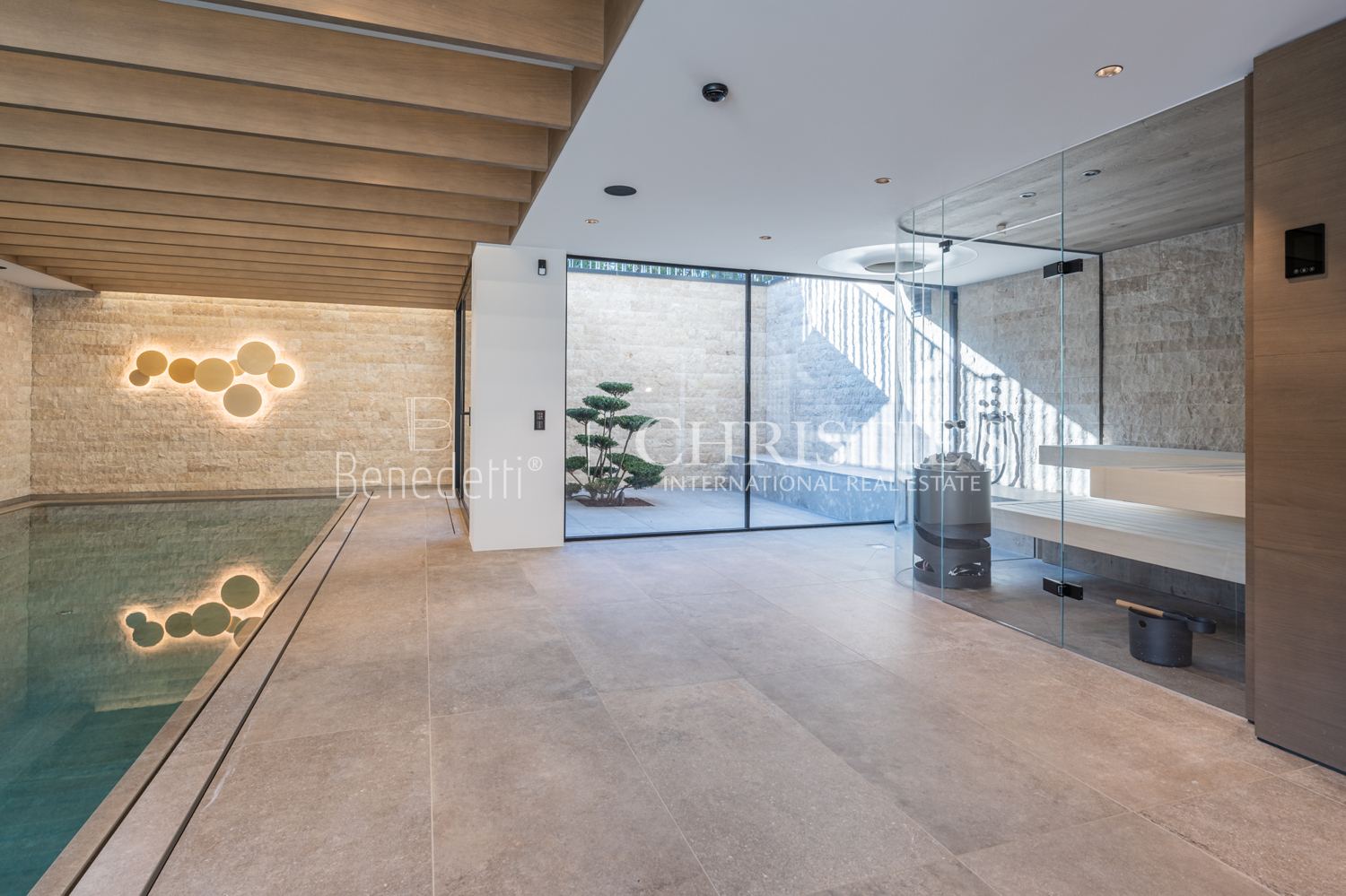 Die private Wellnessoase mit beheiztem Indoor-Pool, Sauna, Whirlpool-Terrasse, Ruhebereich und Fitnessstudio bietet Entspannung auf Fünf-Sterne-Niveau. Jedes Detail — von der hochwertigen Ausstattung bis zur durchdachten Rauminszenierung — wurde für höchste Ansprüche geschaffen.