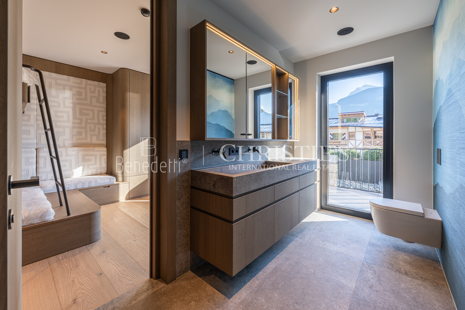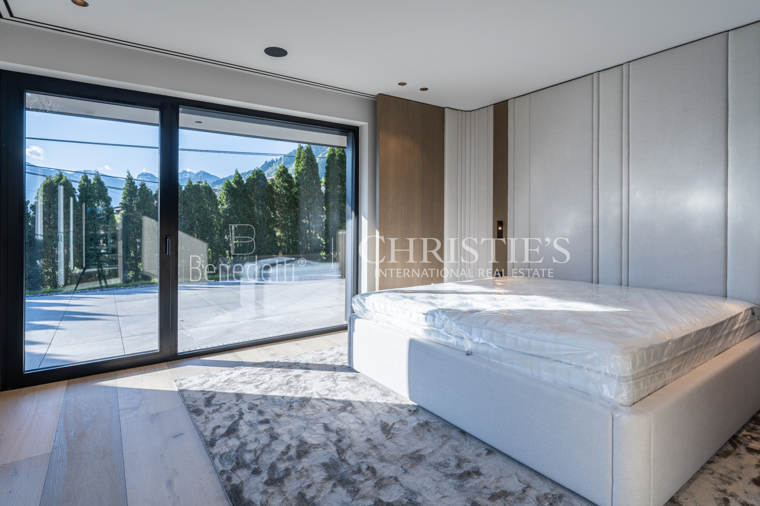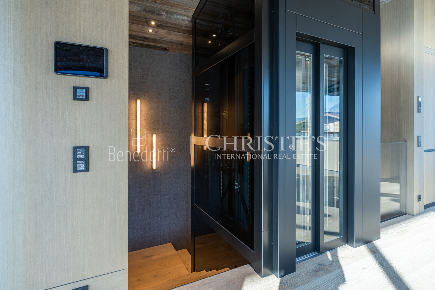 Ein Meisterwerk moderner Architektur und alpiner Handwerkskunst, Interior Design von Bernd Gruber. Exklusive Materialien und Marken: Eiche, Naturstein, Travertin, Ozone, CTO Lighting, Kelly Wearstler, Delcourt, Knoll, Molteni, Gaggenau, CEA Design, Zinc. KNX Smart Home, Videoüberwachung, interner Aufzug.