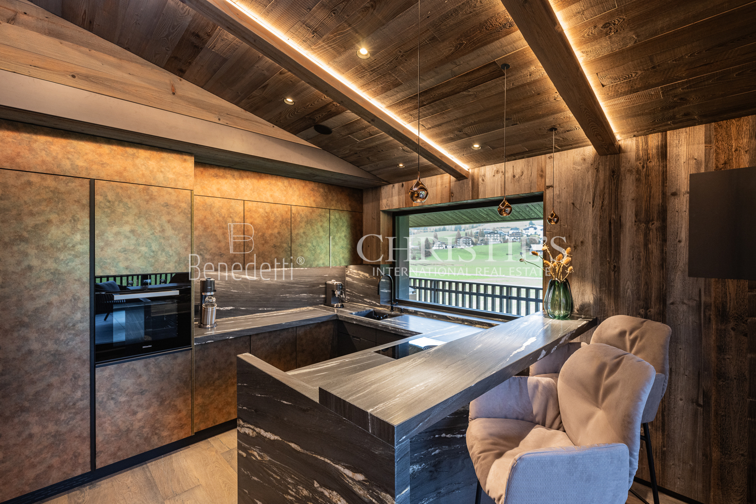 Das Chalet ist Teil einer Villa mit lediglich zwei Wohneinheiten; zudem besteht die Möglichkeit, beide Apartments zu einer einzigen, repräsentativen Wohneinheit von großzügiger Größe zusammenzulegen, ideal für große Familien oder repräsentative Zwecke.