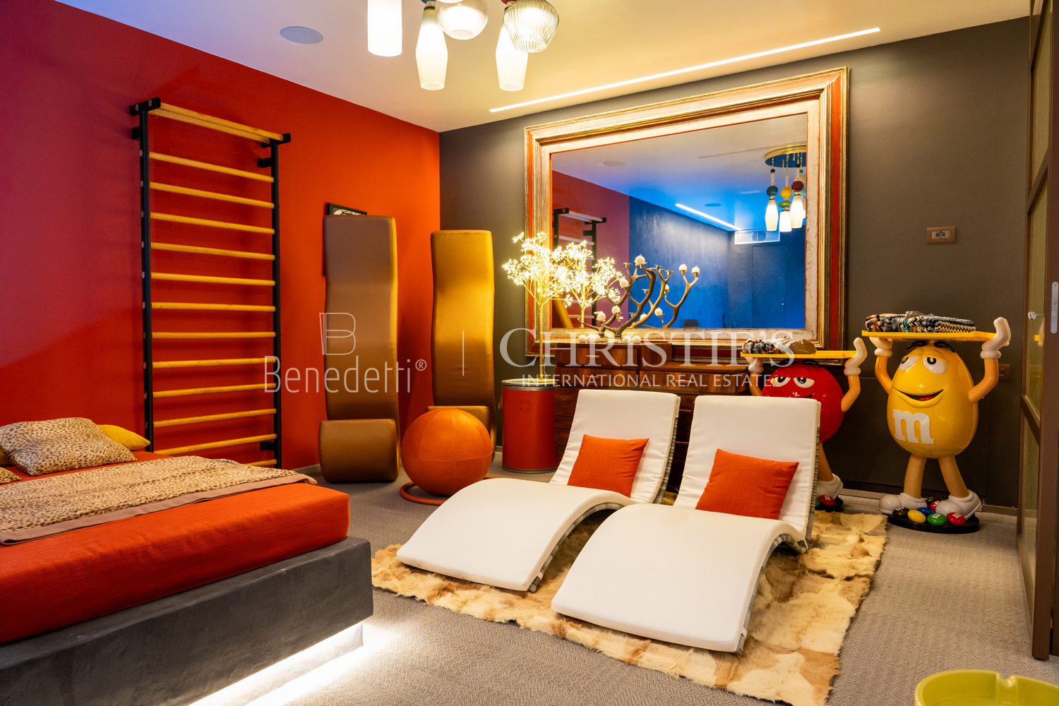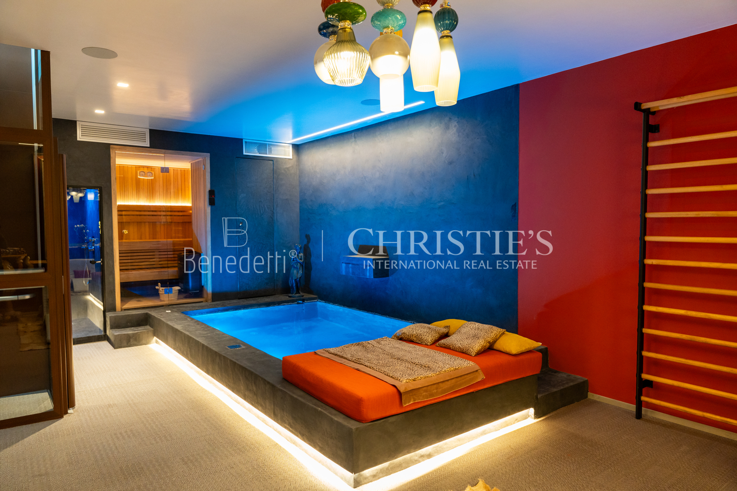 Das Untergeschoss ist vollständig dem Wohlbefinden und der Gastlichkeit gewidmet und bietet einen beeindruckenden Spa-Bereich mit Swimmingpool mit Hydromassage, Sauna, Dampfbad, Erlebnisdusche, Ruhebereich und Fitnessraum, ergänzt durch ein Servicebad. Auf derselben Ebene befinden sich zudem ein Doppelschlafzimmer mit Bad en suite sowie ein Zweibettzimmer mit zwei Einzelbetten, ebenfalls mit eigenem Bad.