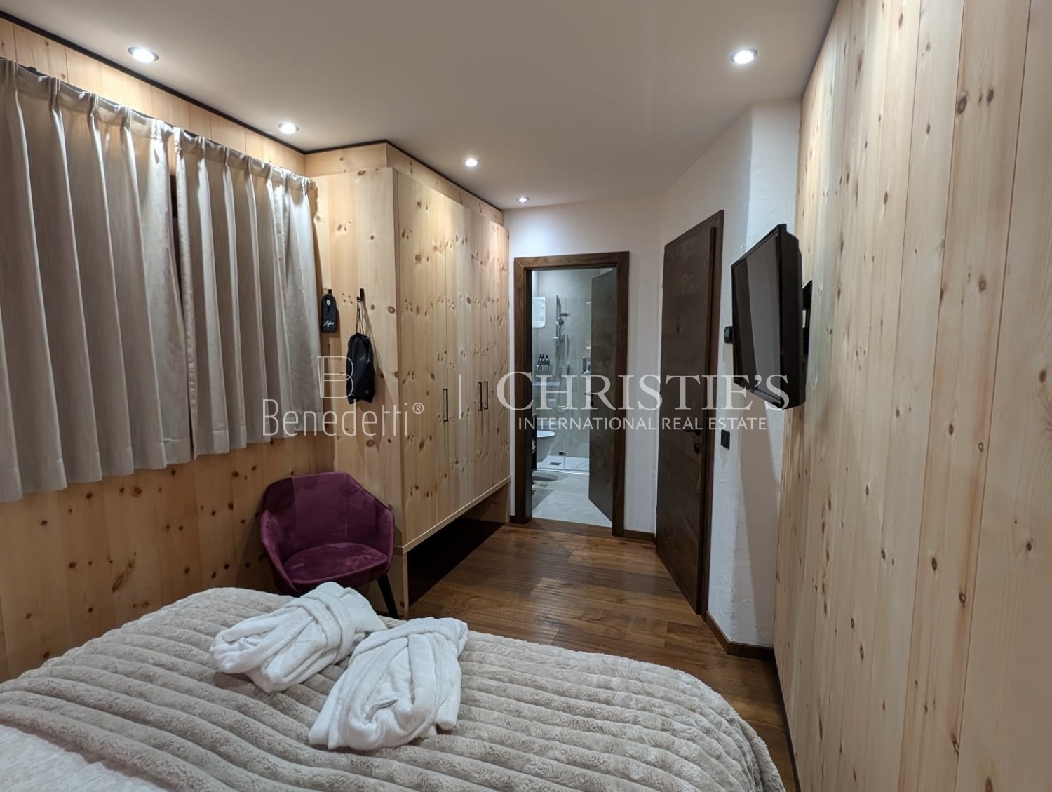 Das Chalet erstreckt sich über drei Ebenen, die durch einen internen Aufzug miteinander verbunden sind, und bietet großzügige, lichtdurchflutete Räume, die zu jeder Jahreszeit höchsten Wohnkomfort gewährleisten.