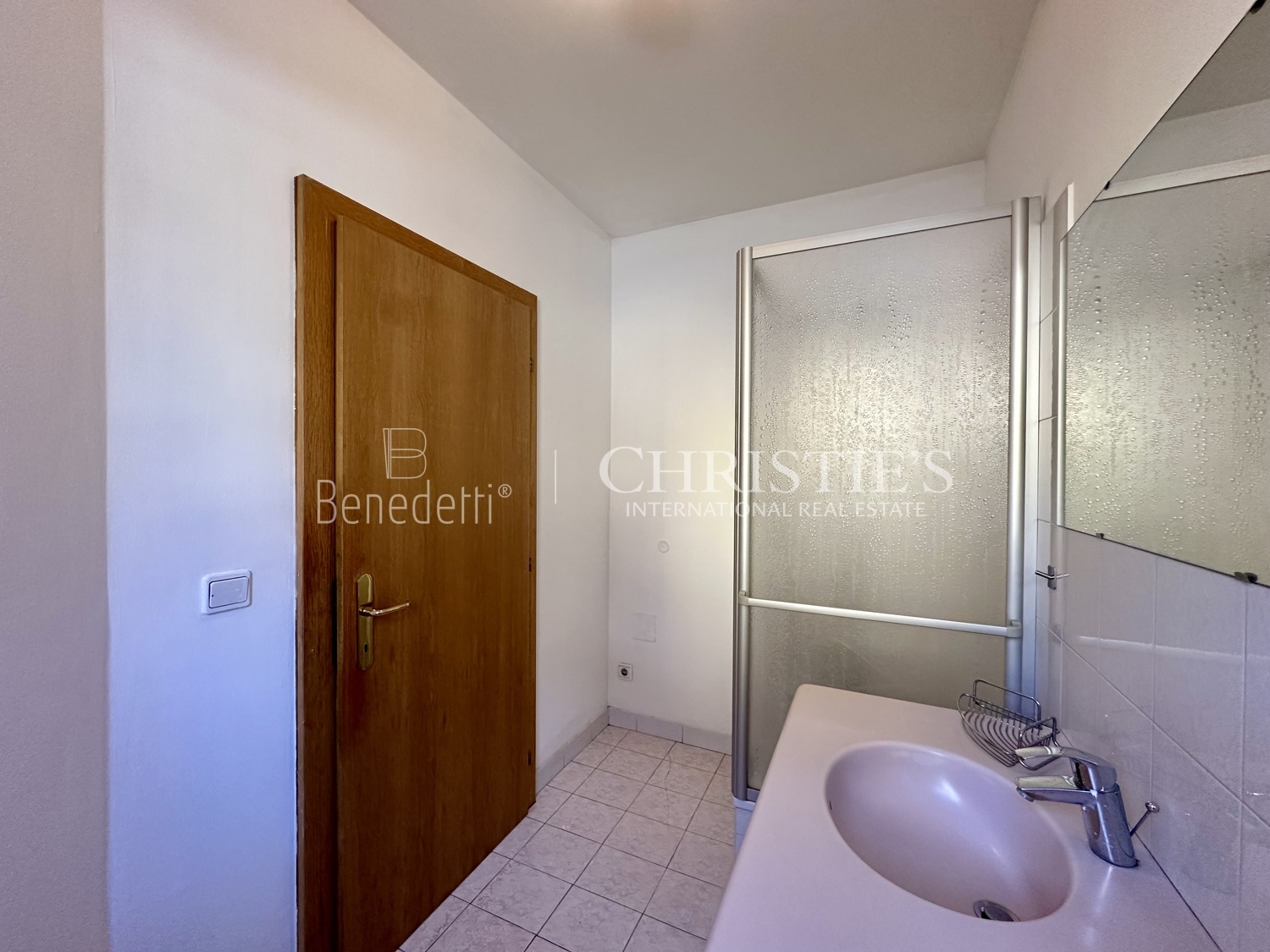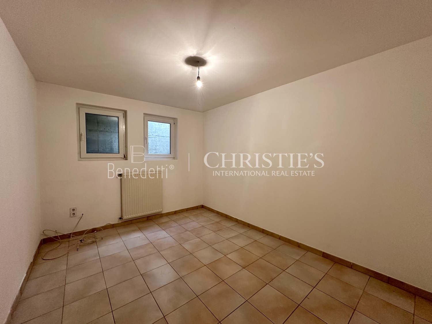 Im Untergeschoss befinden sich zwei geräumige Kellerräume, einer davon mit Dusche und Waschbecken ausgestattet. Ergänzt wird diese Ebene durch den Heizraum sowie einen direkten Zugang zur privaten Garage. Zusätzlich besteht ein weiterer Ausgang zu einem zweiten Stellplatz in der gemeinschaftlichen Garage.