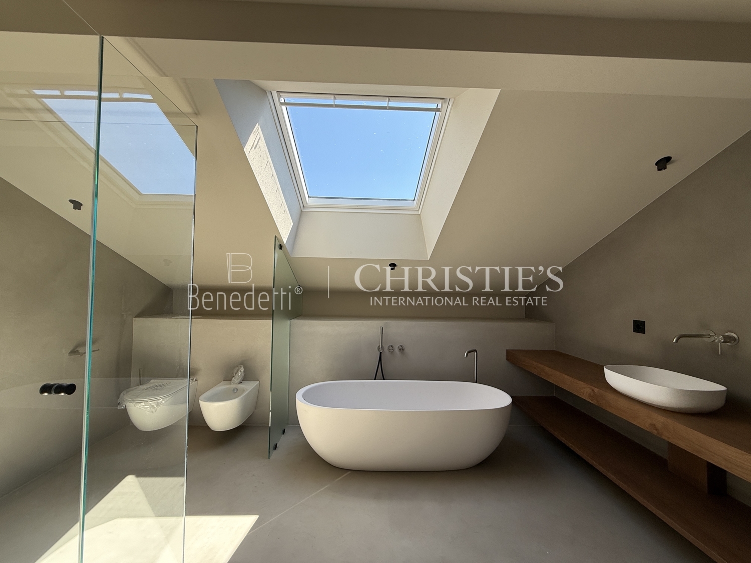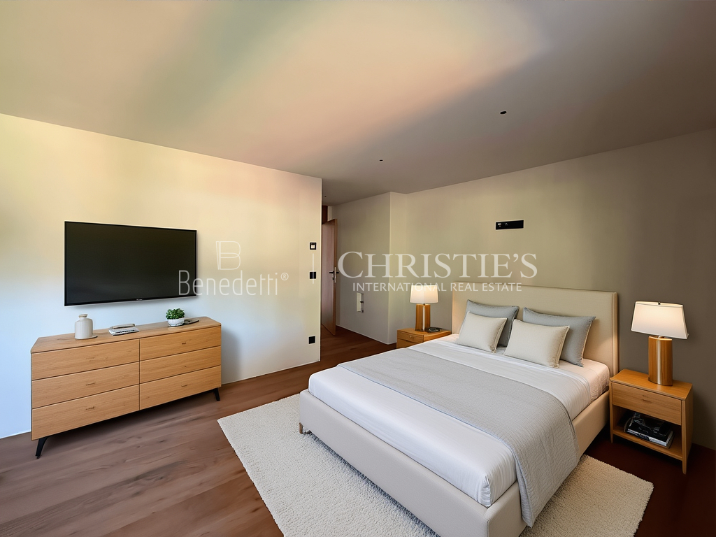 2. Etage: Eine elegante Treppe verbindet die beiden Wohnebenen und führt zu den drei behaglichen Schlafzimmern sowie zwei hochwertig ausgestatteten Bädern. Von hier aus gelangt man auf eine großzügige Terrasse sowie einen weiteren Balkon, die atemberaubende Ausblicke garantieren.