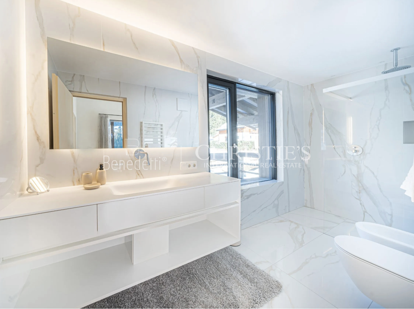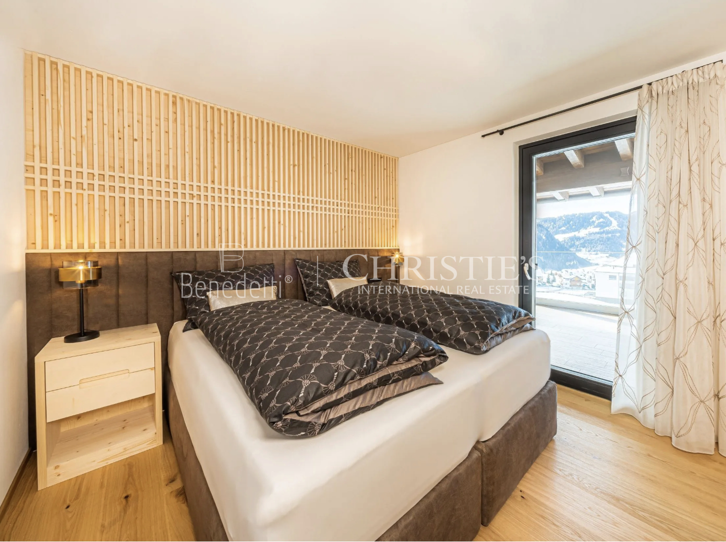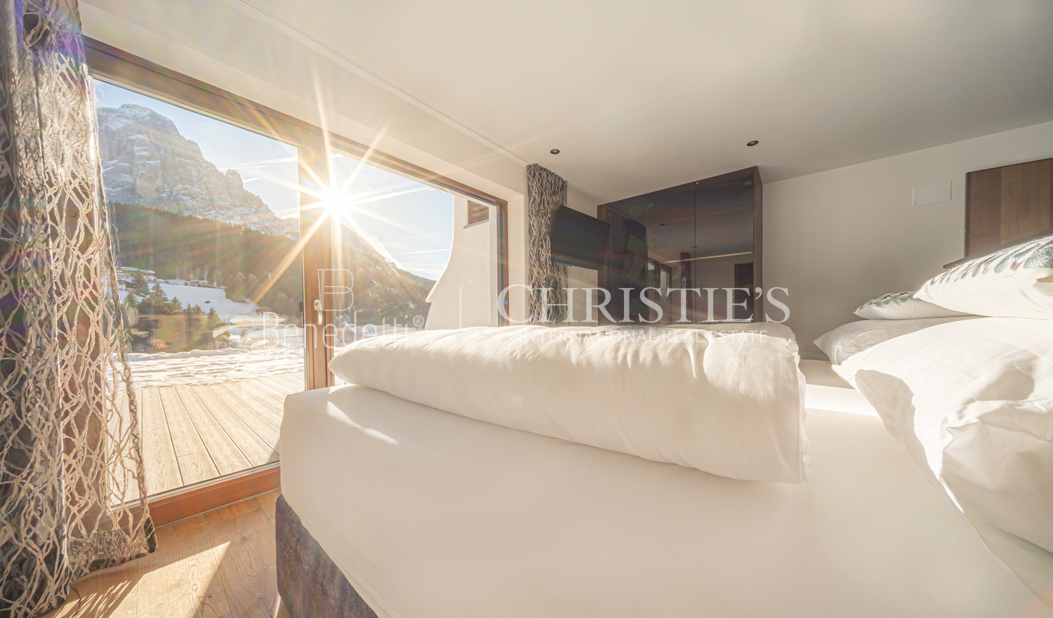 All’esterno, un ampio terrazzo abitabile ed un giardino privato accolgono una splendida piscina, creando un’oasi esclusiva dove rilassarsi e godere della vista sulle Dolomiti. La possibilità di pranzare e cenare all’aperto rende l’esperienza ancora più unica, tra natura, silenzio e panorami mozzafiato.