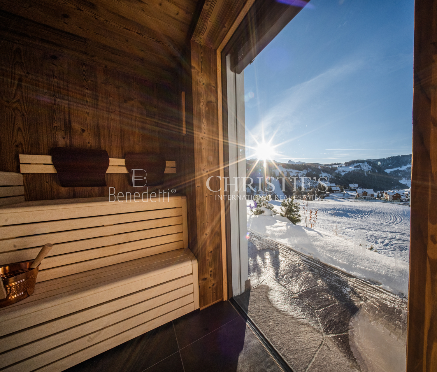 Per il benessere ed il tempo libero, lo chalet offre una zona fitness privata, una sauna e spazi dedicati al relax in ogni stagione. Completano la dotazione un comodo garage, una ski room attrezzata e tutti i servizi pensati per un soggiorno senza pensieri.